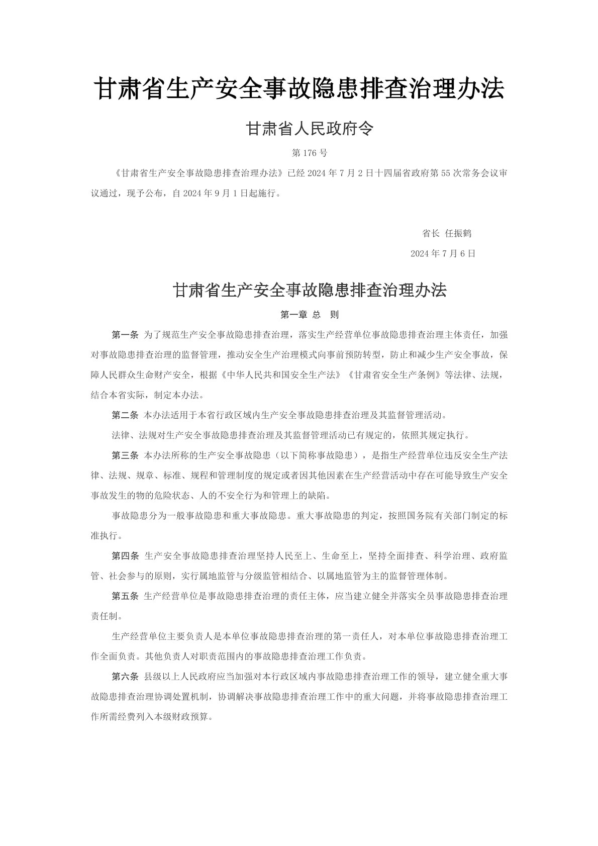 甘肅省生產(chǎn)安全事故隱患排查治理辦法