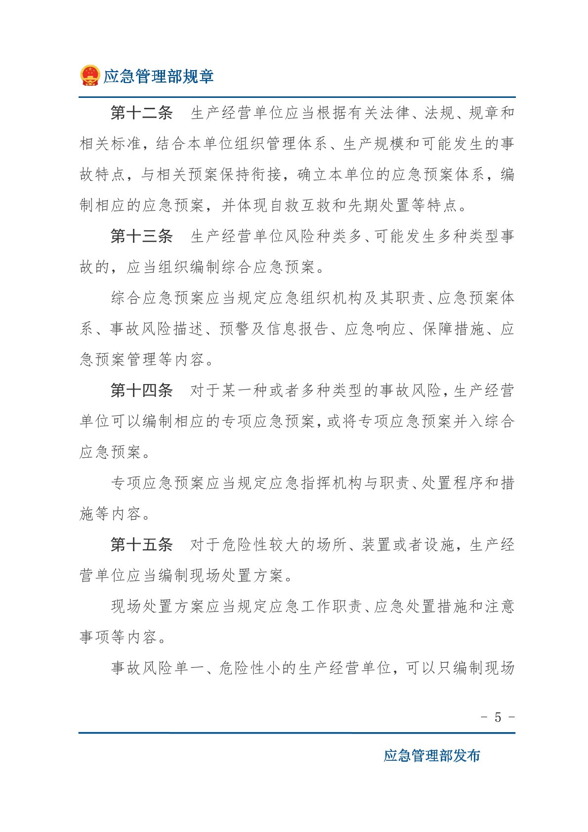 生產安全事故應急預案管理辦法